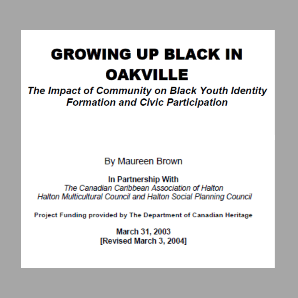 The Canadian Caribbean Association of Halton, Halton Multicultural Council and the Halton Social Planning Council were pleased to support this innovative exploration of black youth in our community. The research culminated into the 2003 report entitled, “Growing Up Black in Oakville: The Impact of Community on Identity Formation and Civic Participation.” This study grew out of concern about being diverse in Halton, and more particularly, in Oakville. Based in a community surrounding a large Canadian city, the study was unique. It represented a pioneering effort that would inform community, civil society and government as they moved to redefine the meaning of social inclusion in demographically diverse communities.