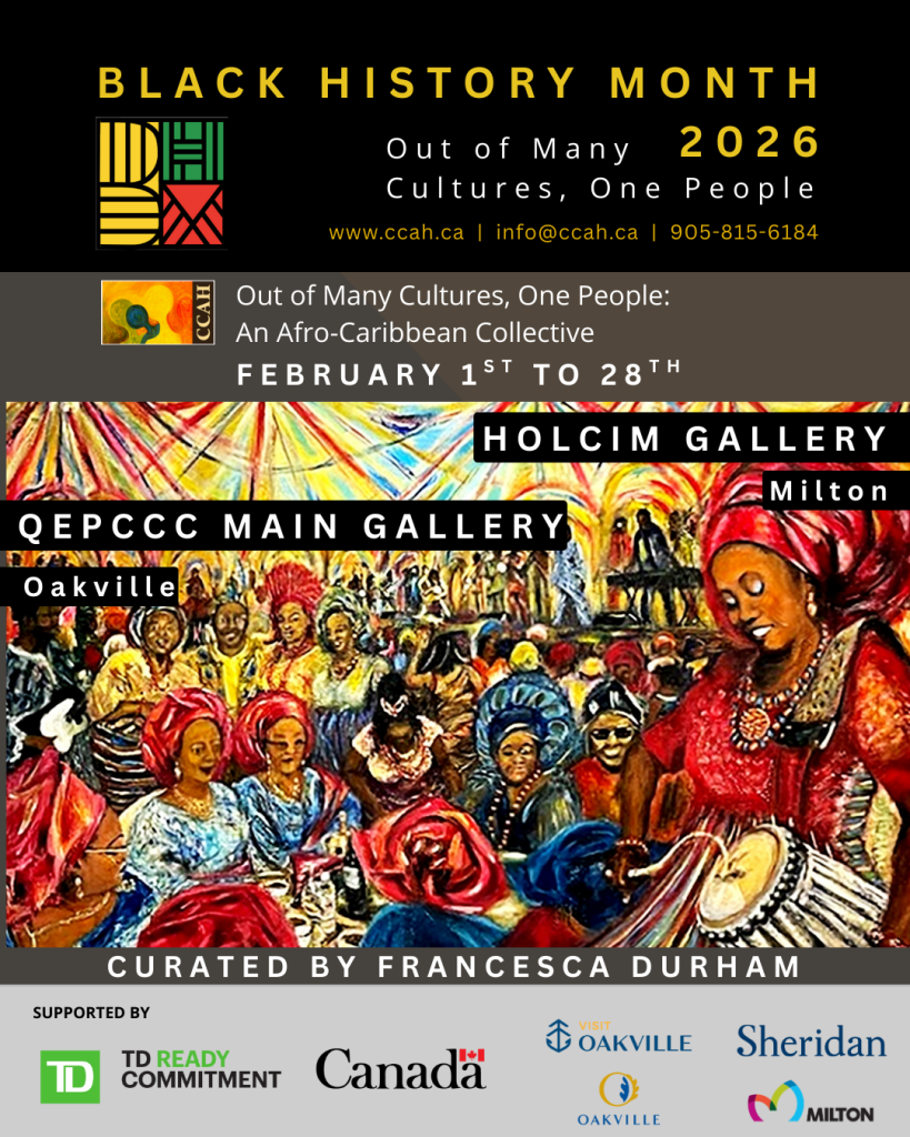 February 1-February 28: Out of Many Cultures, One People: An Afro-Caribbean Collective | Queen Elizabeth Park Community and Cultural Centre (QEPCCC) Main Gallery | Holcim Gallery | The FirstOntario Arts Centre | Curator: Francesca Durham